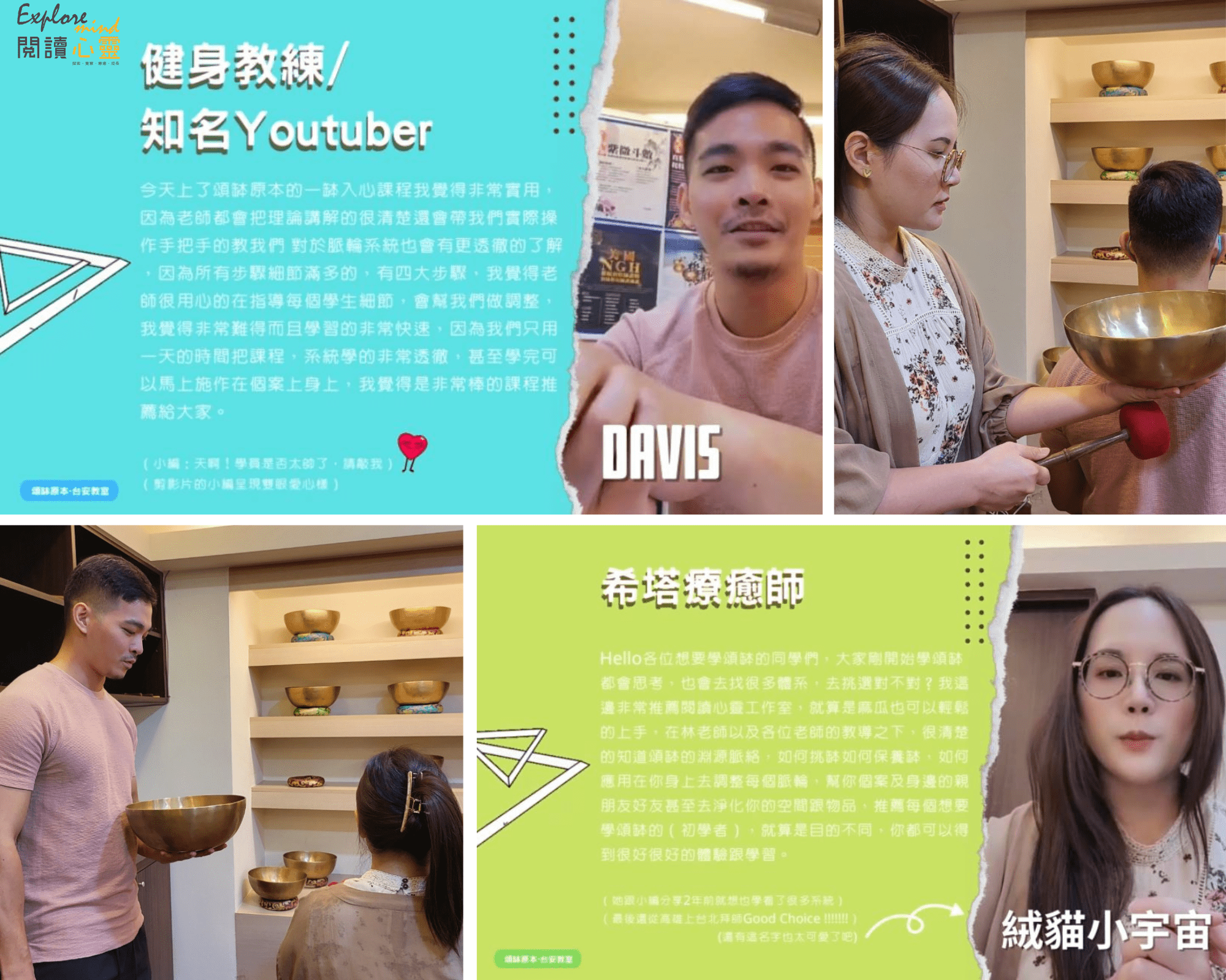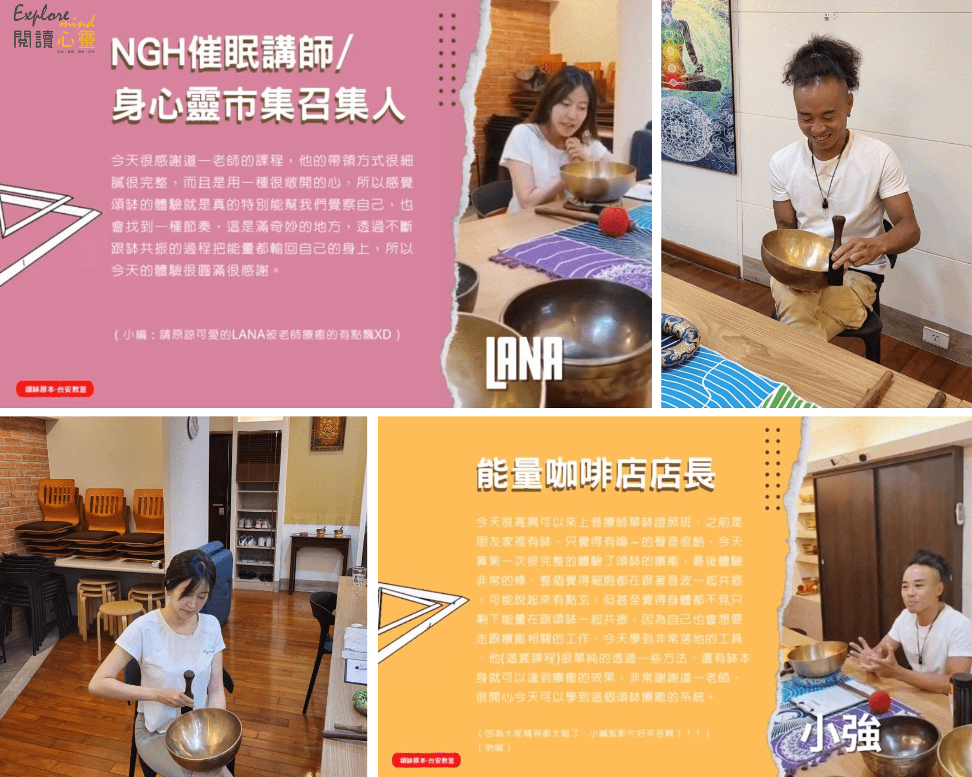 老師親授完整的頌缽技巧,及助教老師的從旁協助,讓每位學員學得到位。深刻且紮實的完美體驗,在課後皆有收穫滿滿的正向回饋。