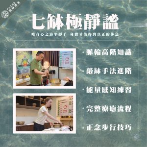 在陰陽七缽溫柔的共振,搭配著脈輪門戶間取得的和諧感受,彷彿在每一聲的敲擊之下,回復到了身體最原始的狀態