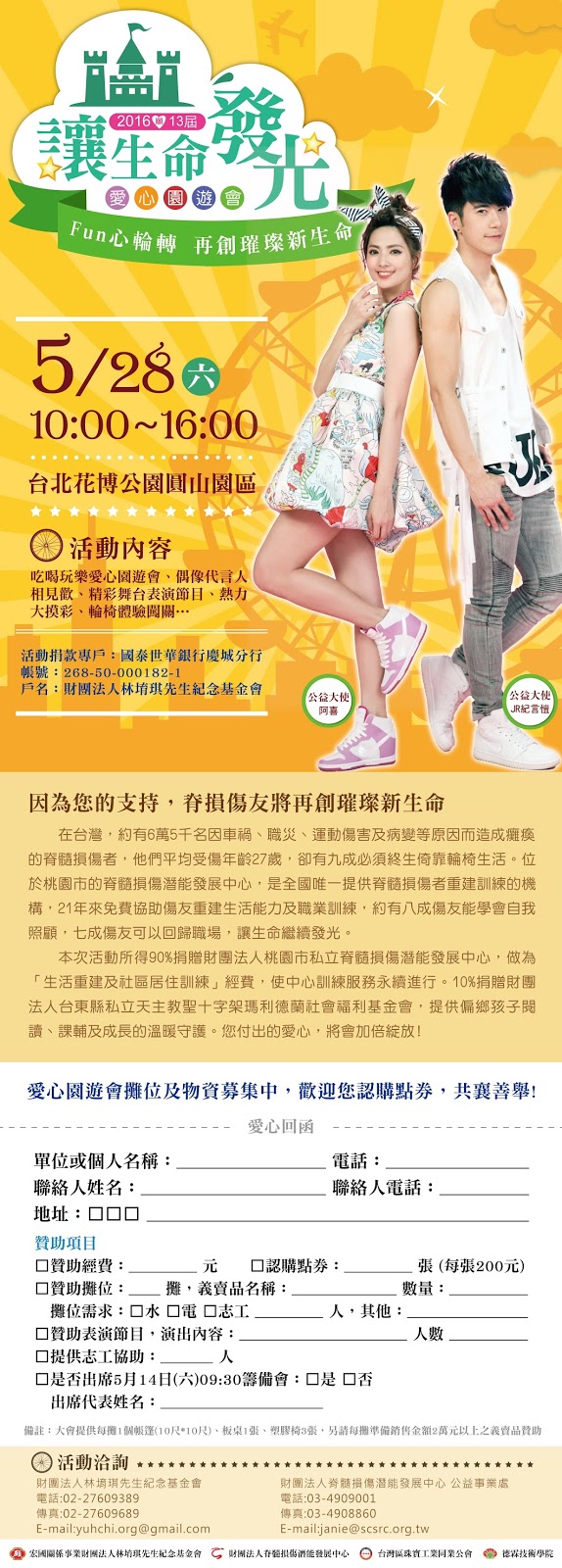 2016年『讓生命發光愛心園遊會』 5/28(六)台北花博圓山園區 誠邀贊助支持