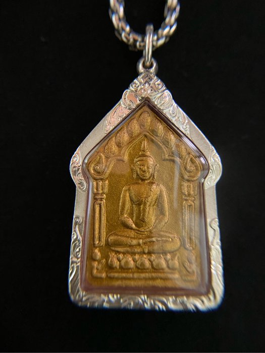 龍婆薩空 派古曼坤平2546金花內含最後龍婆tim傳承碰派古曼粉雙符管純銀雕花開合殼送不鏽鋼鍊附沙馬公驗證卡泰國佛牌聖物