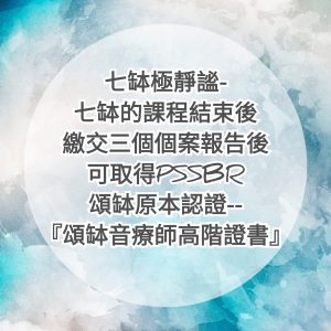3.課程結束後,繳交三個個案報告可取得「PSSBR頌缽原本」認證 – 專業音療師證書 (或)高階音療師證書。