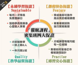 閱讀心靈「美國NGH專業催眠師證照課程」,採取「六天密集班」沈浸式的教授方式,課程還有四大保證哦!!