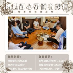 ˙課程後將成為一位團體靜心導師,帶給學員全新的團體頌缽靜心感受與體驗。